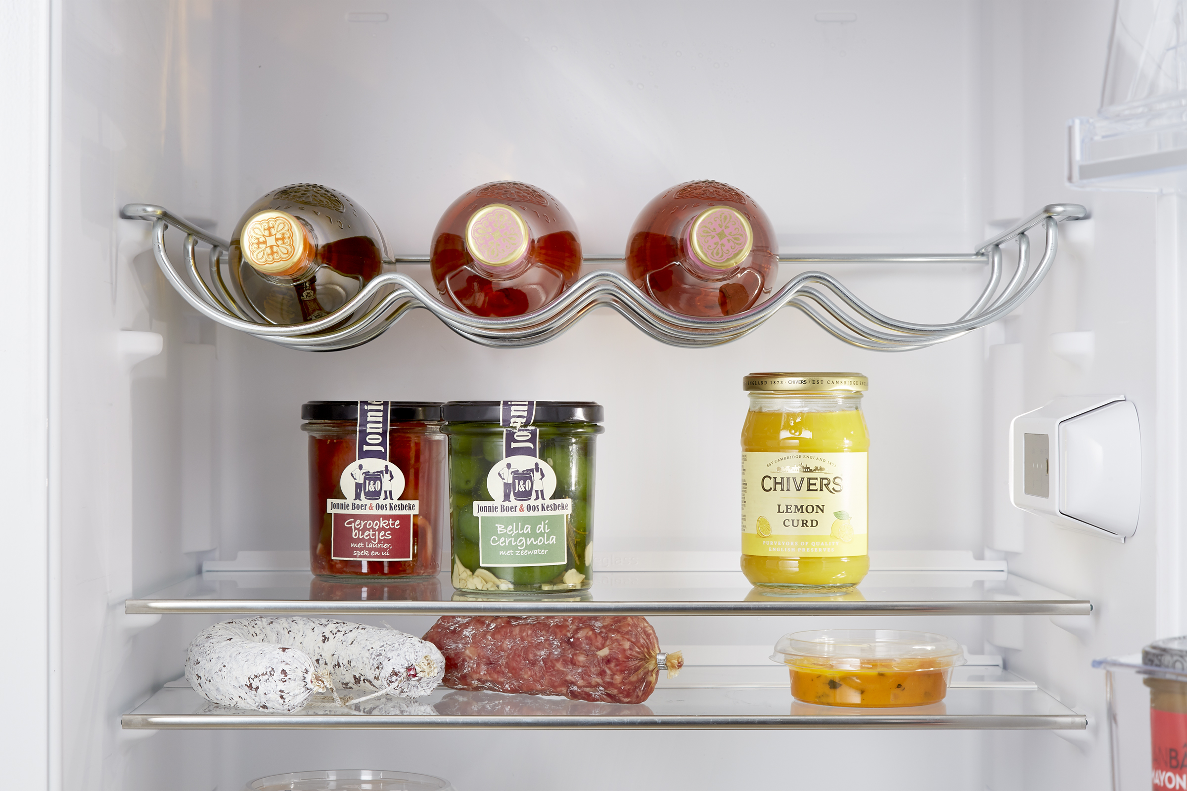 - 1 deurvak is smaller, waardoor hogere flessen in het vak