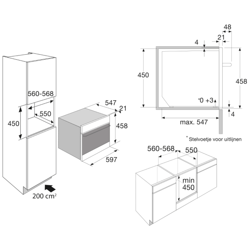 inbouw mogelijk in: hoge kast, onder werkblad
