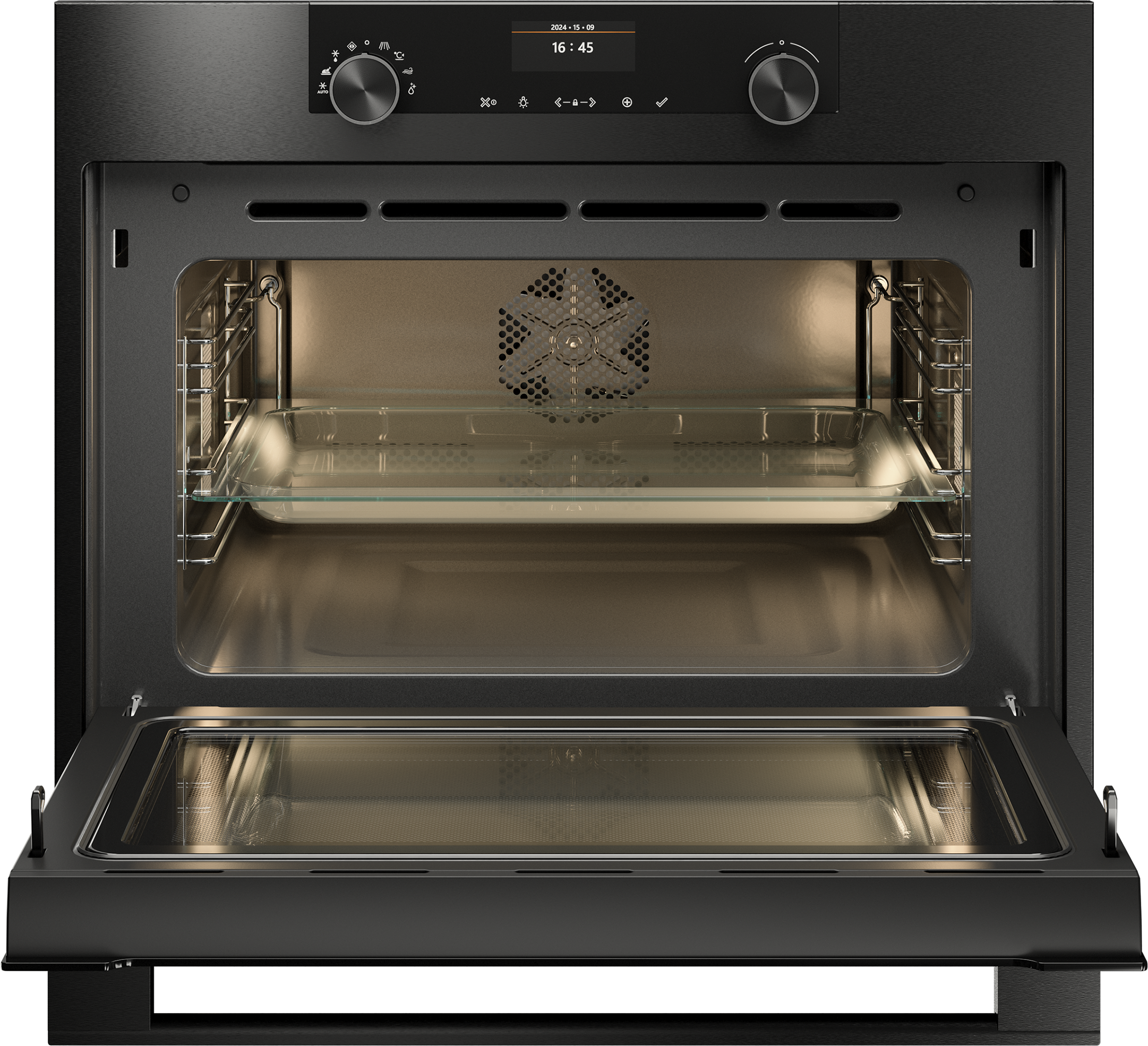 intuïtieve bediening door metalen draaiknoppen en interactieve touch control toetsen