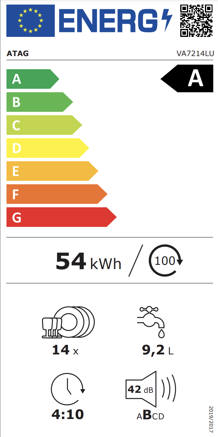 Productinformatie "ATAG VA7214LU vaatwasser volledig integreerbaar"
