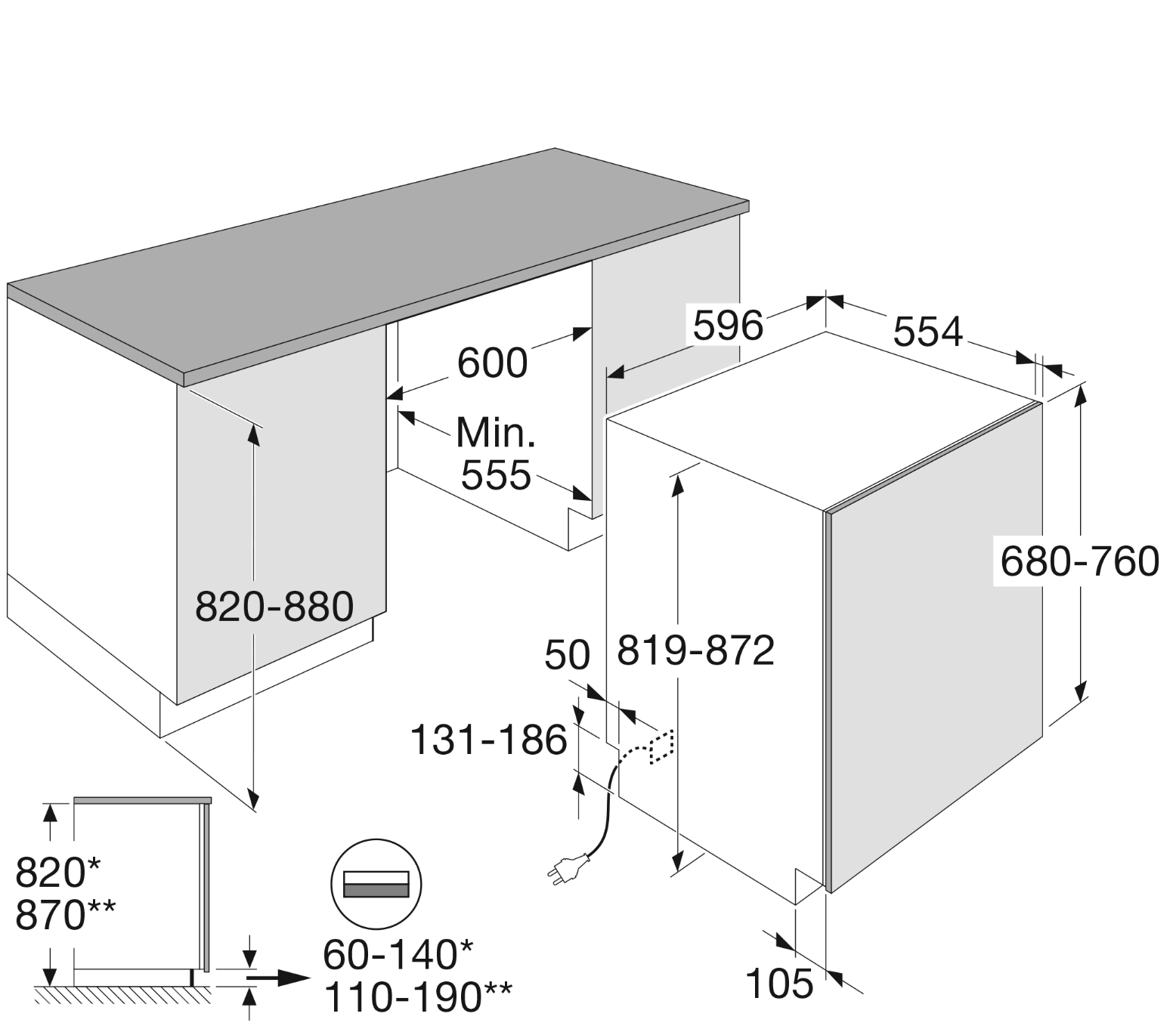 | minimum frontpaneel: | 680 mm |