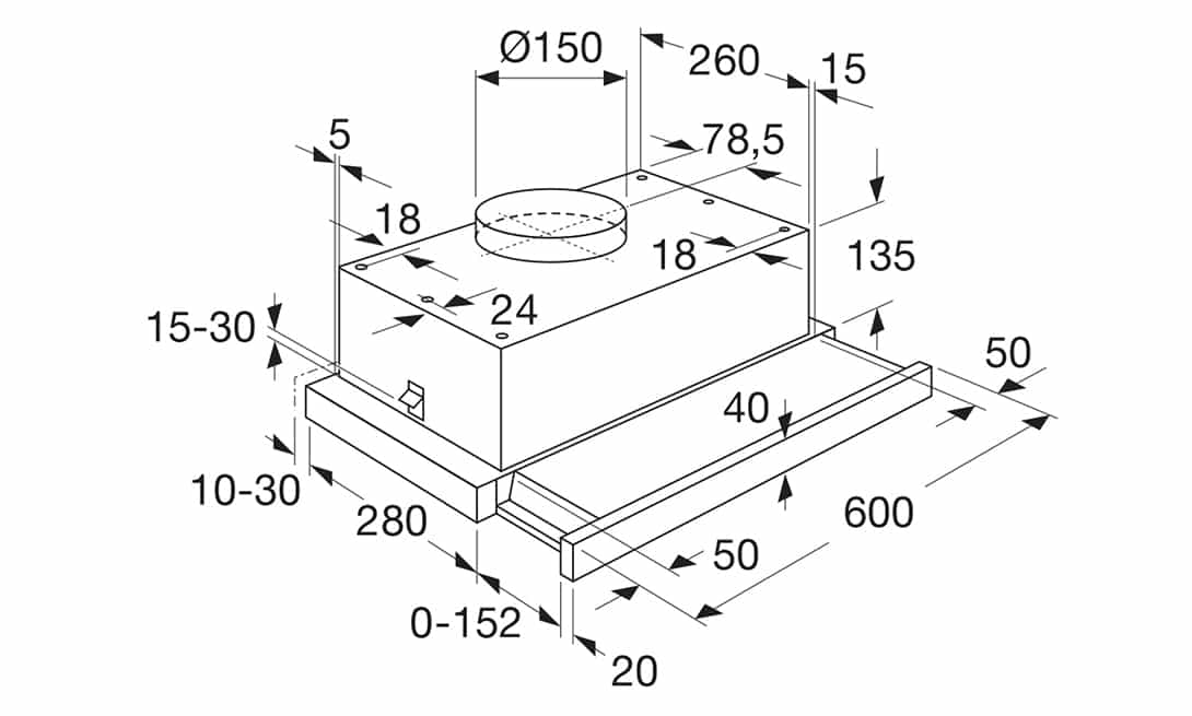 Afzuigkap voorzien van easy fixing installatie systeem met 3