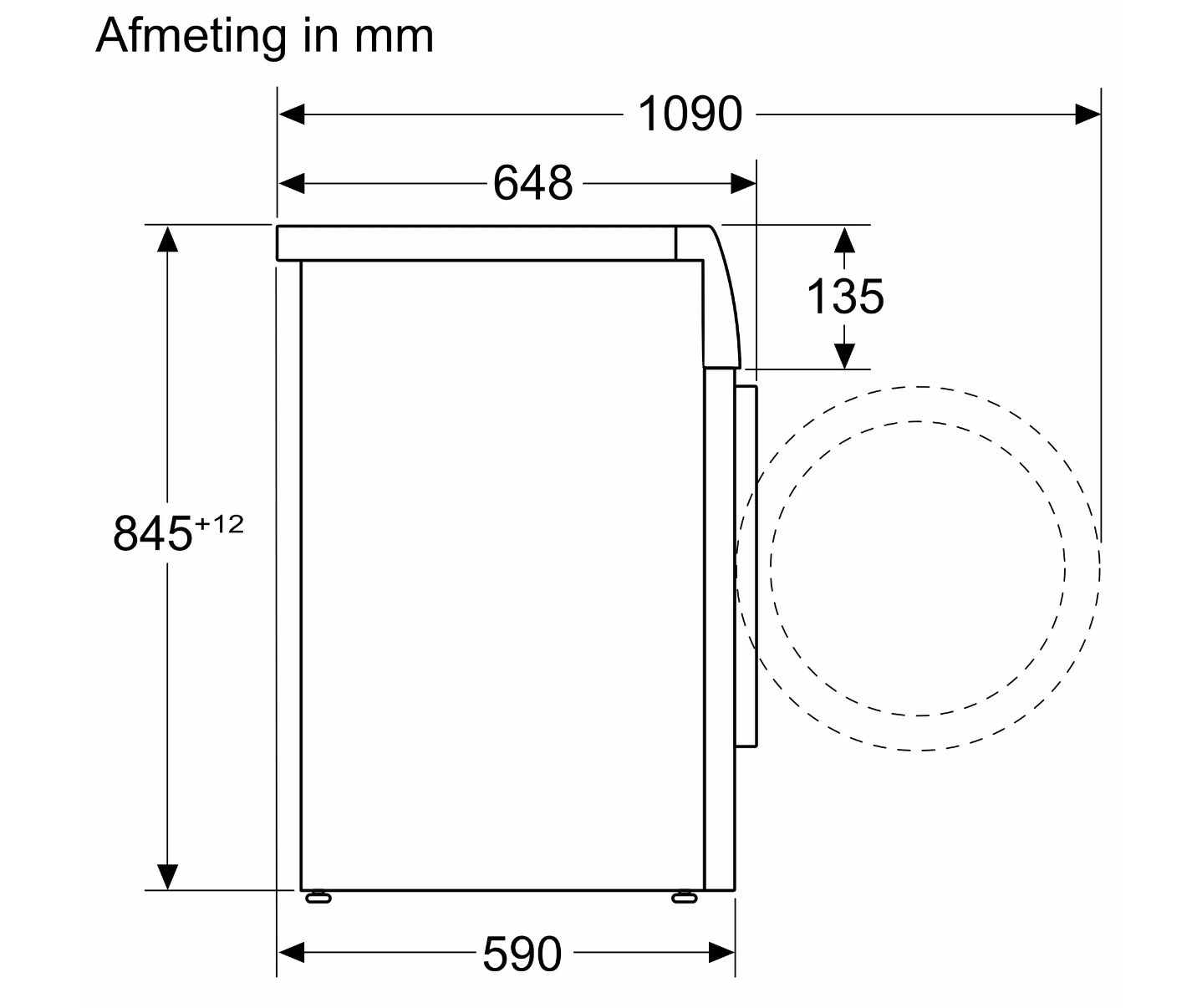Afmetingen van het toestel: 845 x 598 x 590 mm