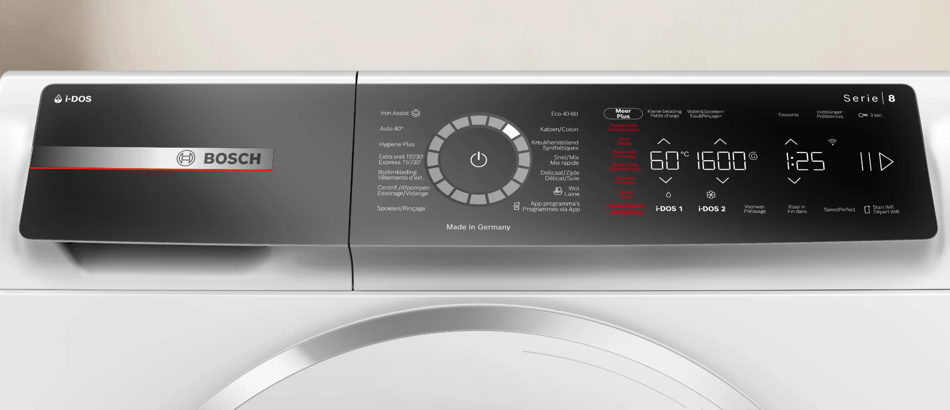 Een uiterst innovatieve wasmachine met i-Dos en detergent scan mogelijk dankzij Home Connect bespaart water en wasmiddel en vermindert het strijkwerk dankzij Iron Assist.