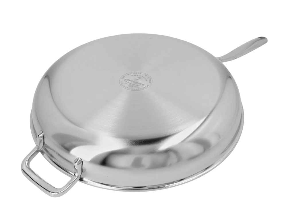 De Multiline pannen zijn ideaal voor iedereen die graag met kwaliteitsmateriaal werkt. Het 3 mm (3,3 mm voor 32 cm) dikke 7-PlyMaterial® zorgt voor een zeer goede warmtegeleiding en maakt bakken op een lage stand van het vuur mogelijk. Deze pannen liggen lichter in de hand bieden een goede mix tussen hoogstaande kwaliteit en optimaal gebruiksgemak. Door het slimme ontwerp van de nieuwe rand bij de Multiline bakpannen van Demeyere kunnen ze voortaan veilig in de vaatwasmachine, zonder de aluminiumlaag aan te tasten.