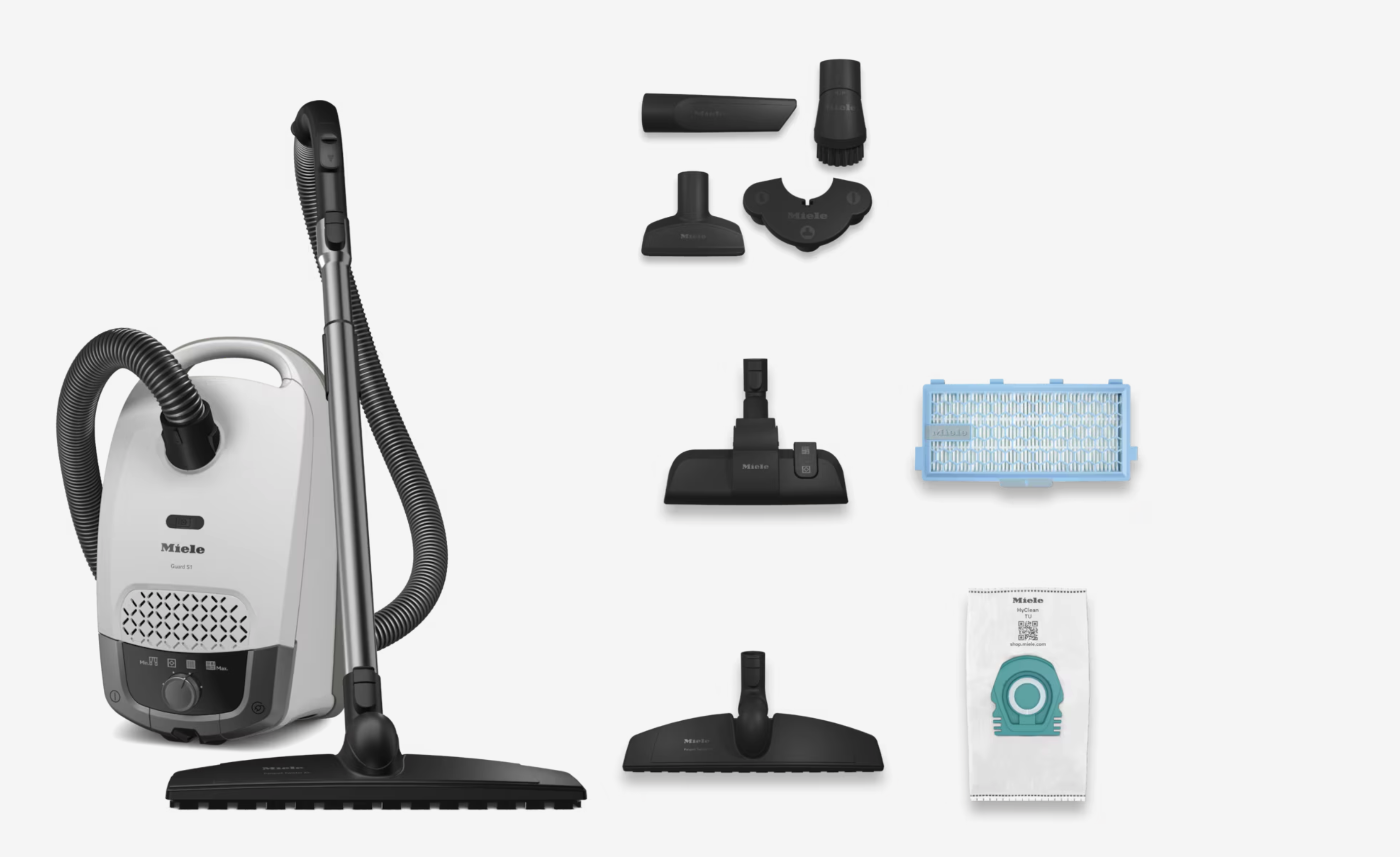 Productinformatie "MIELE GUARDS1PARQUETXLBRILLIANTWHITECE GUARD stofzuiger met zak"