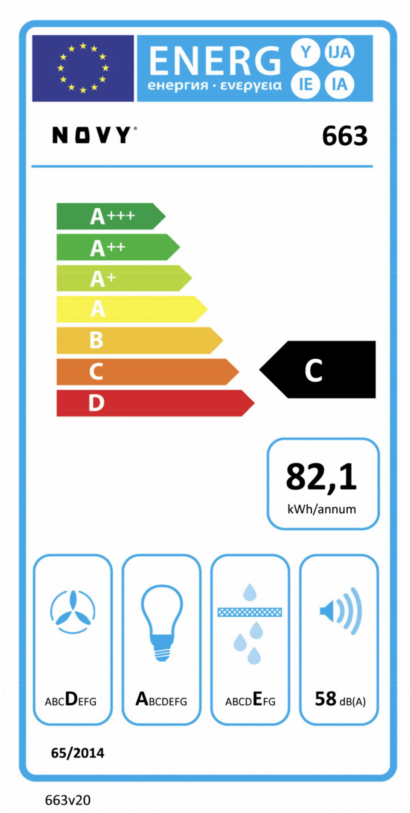 Vetfilterefficiëntie klasse (GFEdampkap) E
