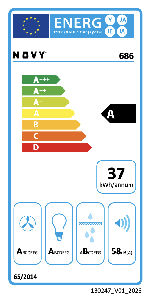 Hydrodynamische efficiëntie klasse (FDEdampkap) A