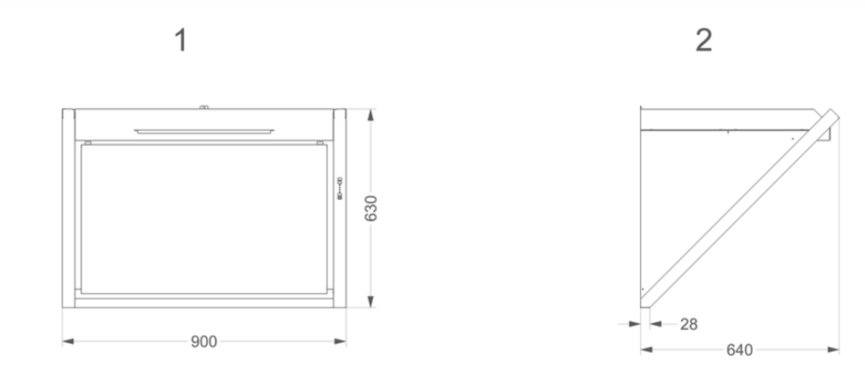 Product afmetingen met recirculatie (BxDxHmin-Hmax) (mm) 900 x 640 x 630 - 630
