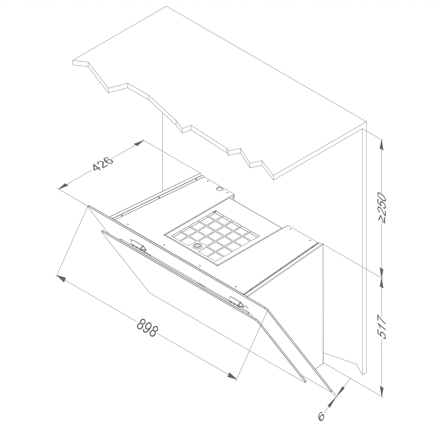Product afmetingen met recirculatie (BxDxHmin-Hmax) (mm) 898 x 426 x 517 - 517