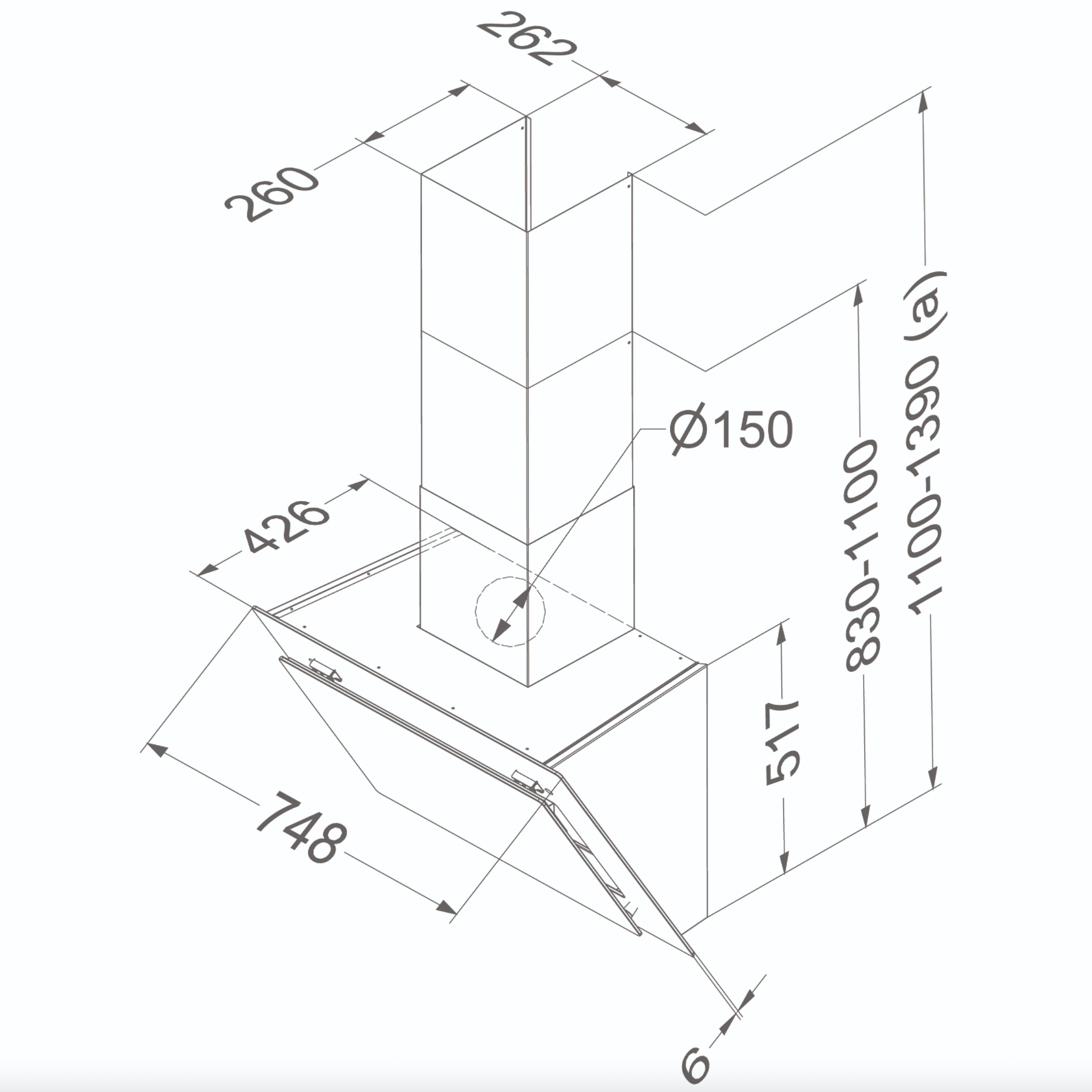 Product afmetingen met recirculatie (BxDxHmin-Hmax) (mm) 748 x 426 x -