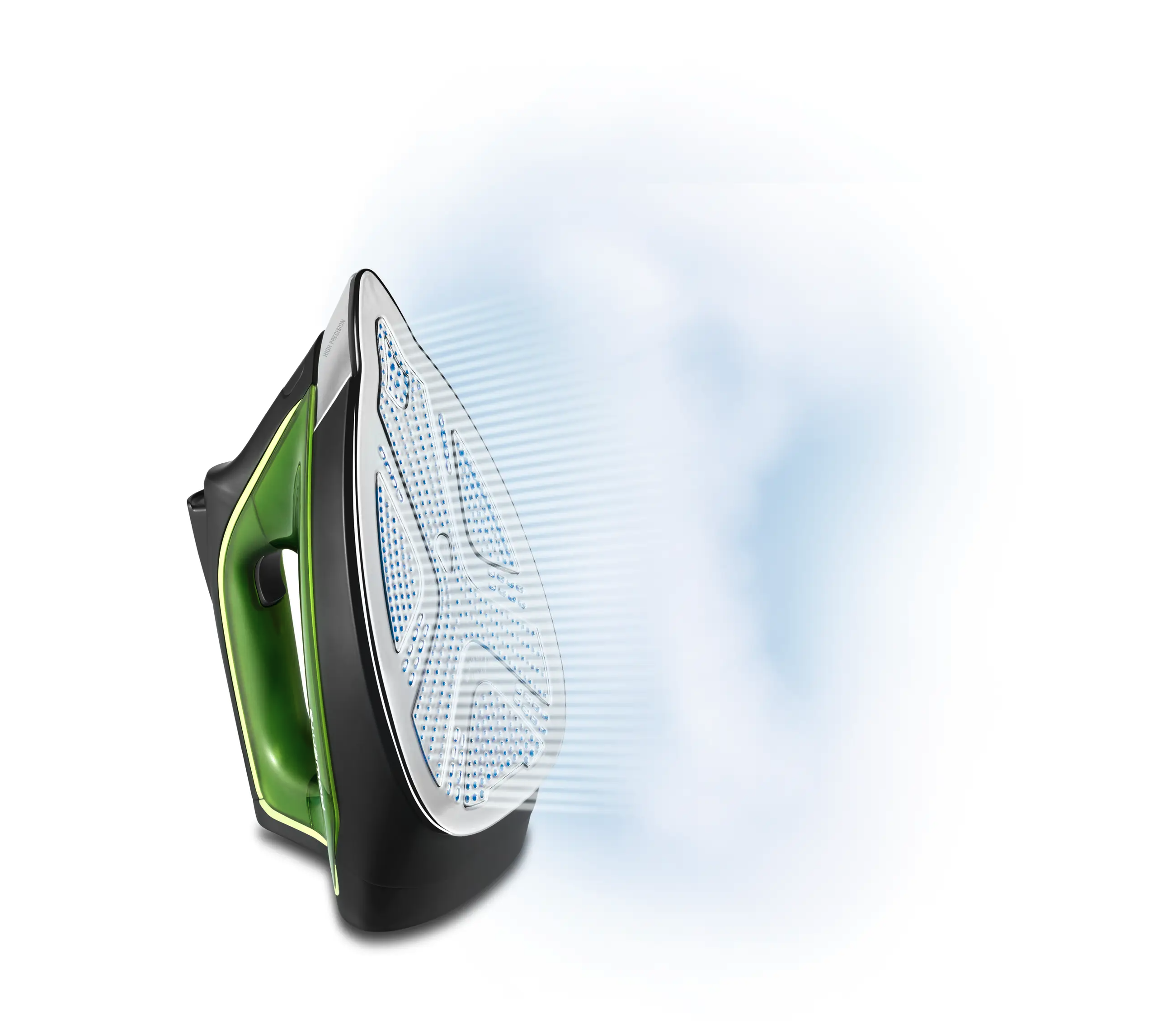 Geconcentreerde stoomstoot aan de tip van de strijkzool