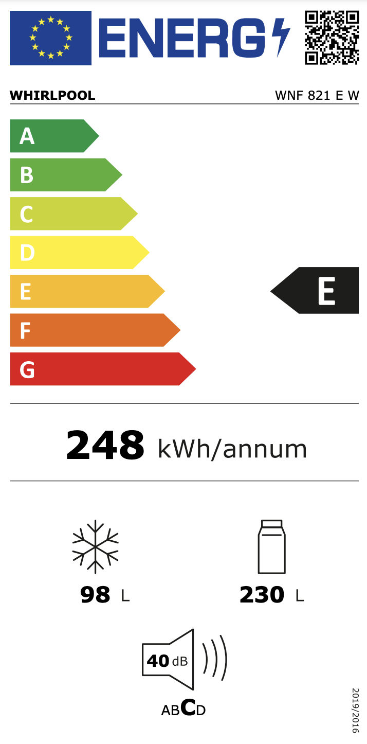 Productinformatie "WHIRLPOOL WNF821EW koel-/vriescombinatie - 189cm"