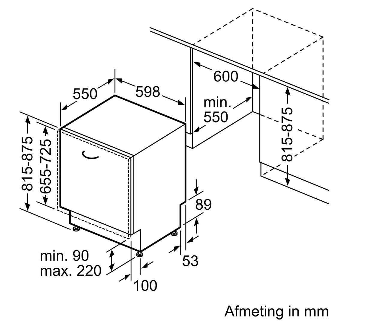 | minimum frontpaneel | 655 mm |