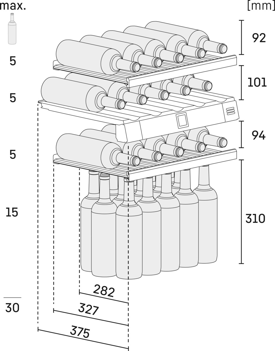 Capaciteit 0,75 l bordeaux fles: 30