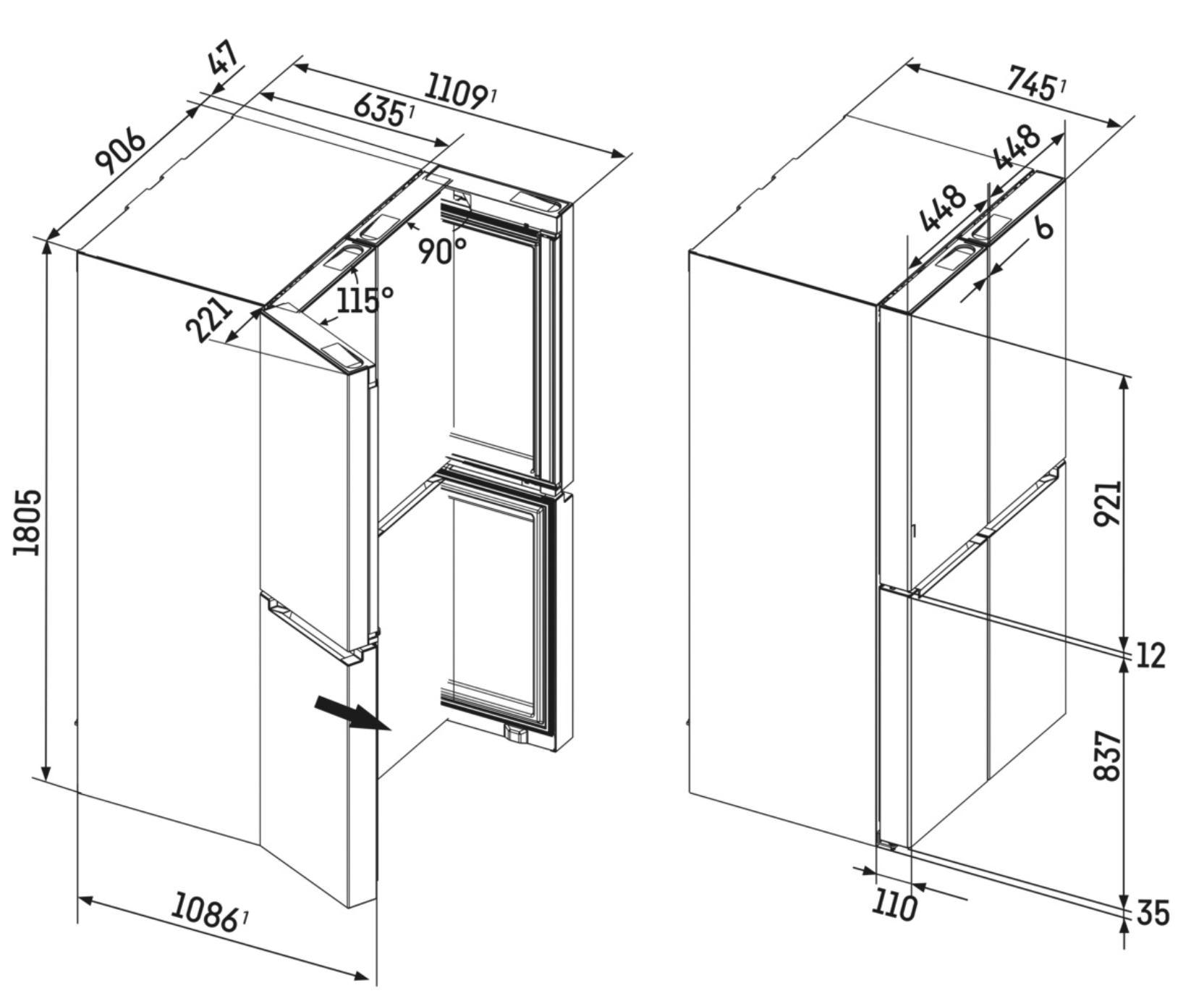 Diepte 74,5 cm Max. Meubelgewicht koeldeel - Netto gewicht / Bruto gewicht 139,7 kg / 152,9 kg