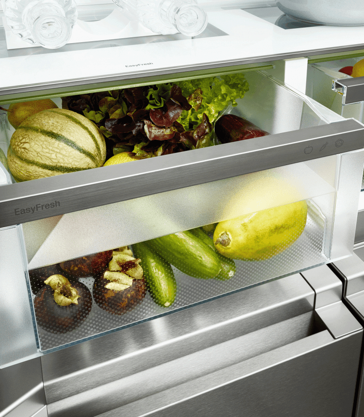 Ladensysteem koeldeel telescopisch gedeeltelijk uittrekbaar Luchtvochtigheid regelbaar Luchtvochtigheid regelbaar in 2 laden Flesopslag flessenplateau voor 3 flessen