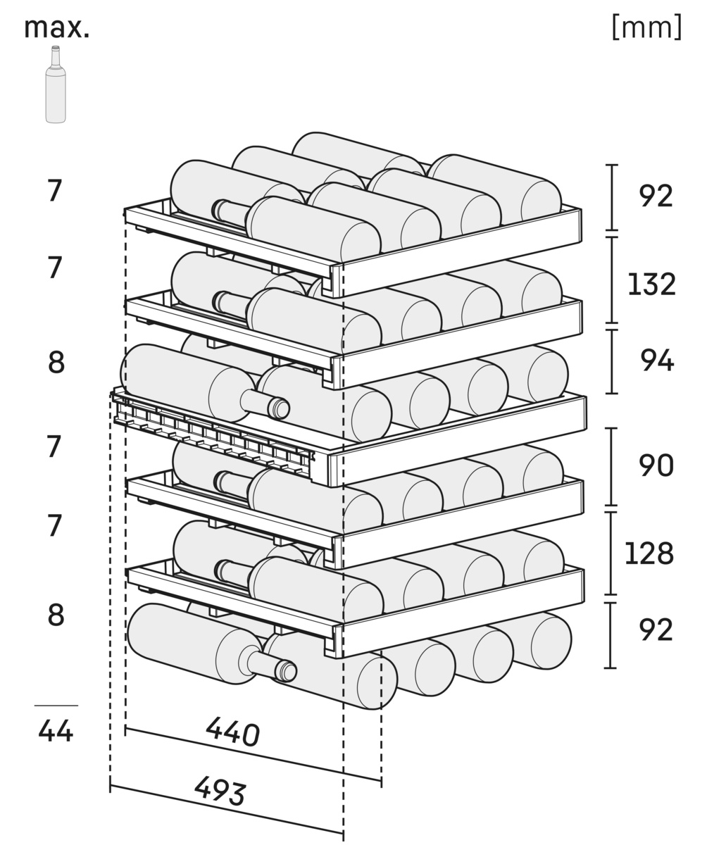 Maximaal aantal flessen bordeaux-formaat 0,75 l 44