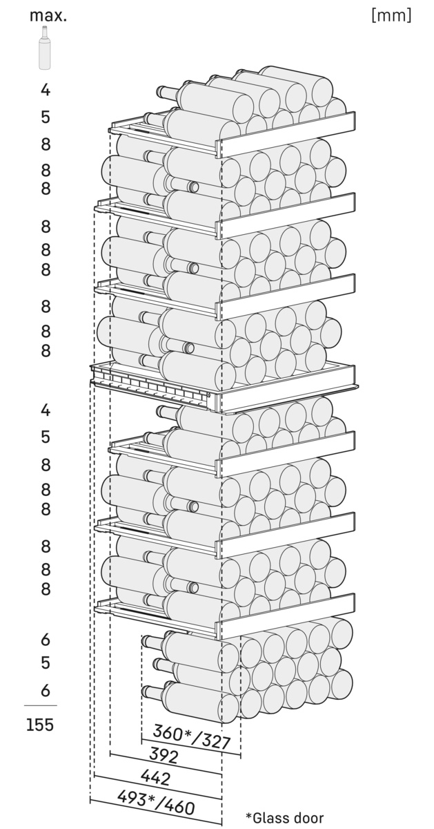 Capaciteit 0,75 l bordeaux fles: 155