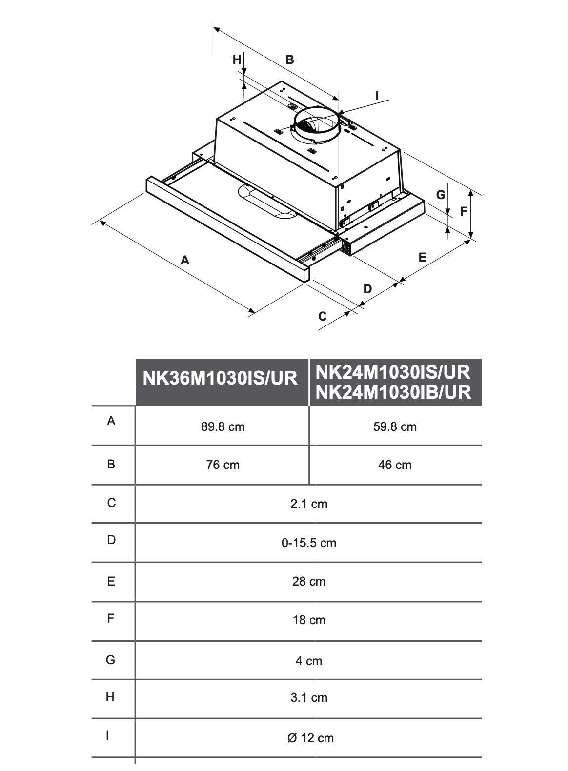SAMSUNG NK36M1030IS telescopische dampkap - 90cm