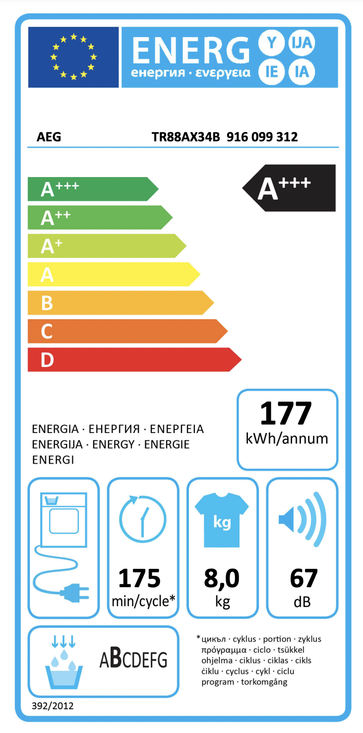 Productinformatie "AEG TR88AX34B 8000 droogkast - warmtepomp"