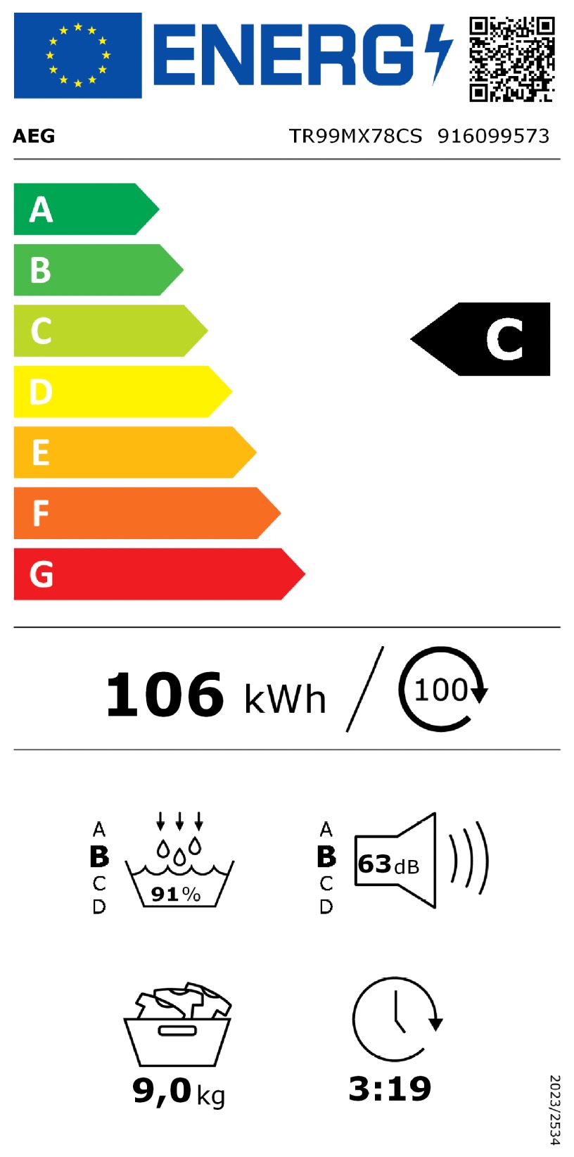 Productinformatie "AEG TR99MX78CS 9000 droogkast - warmtepomp"