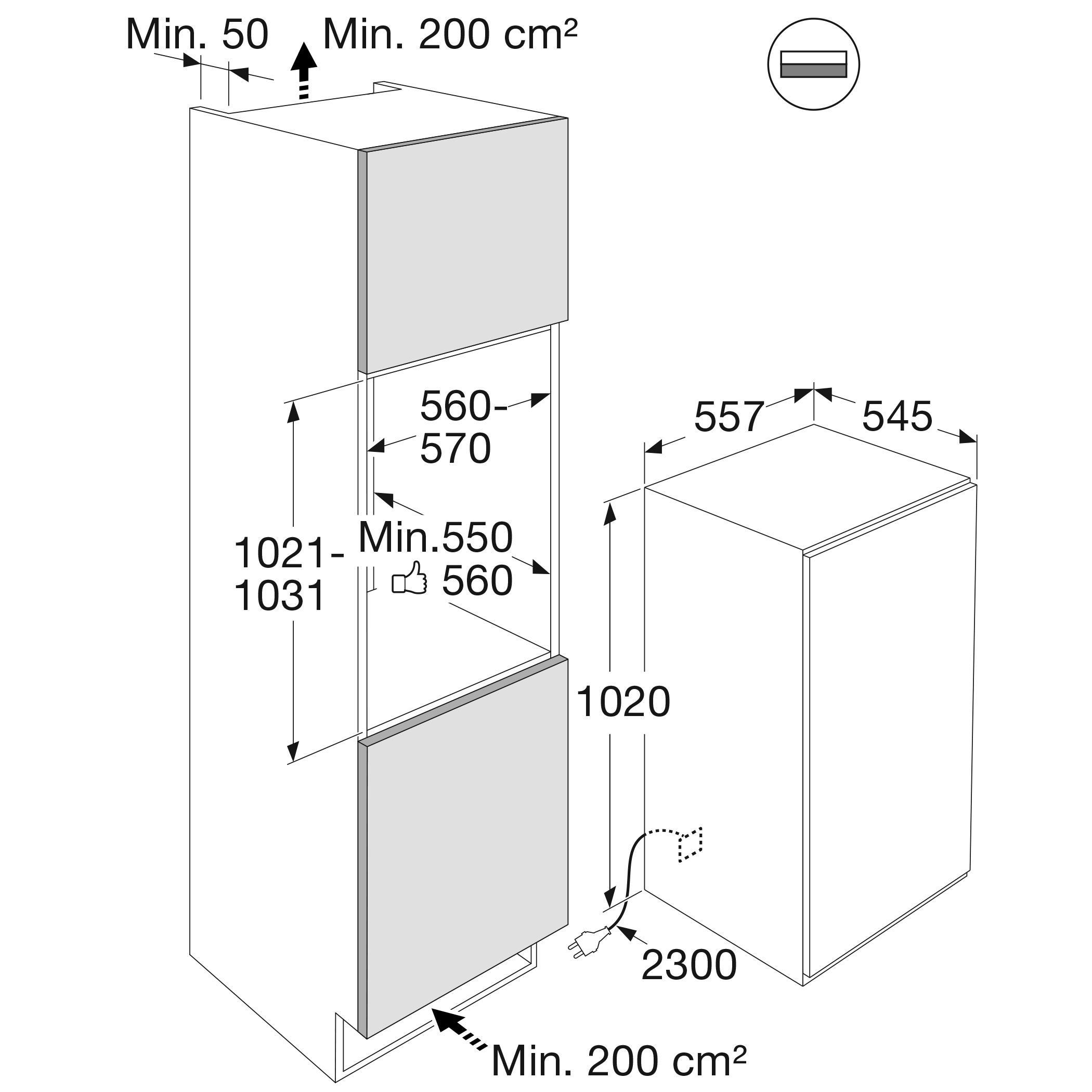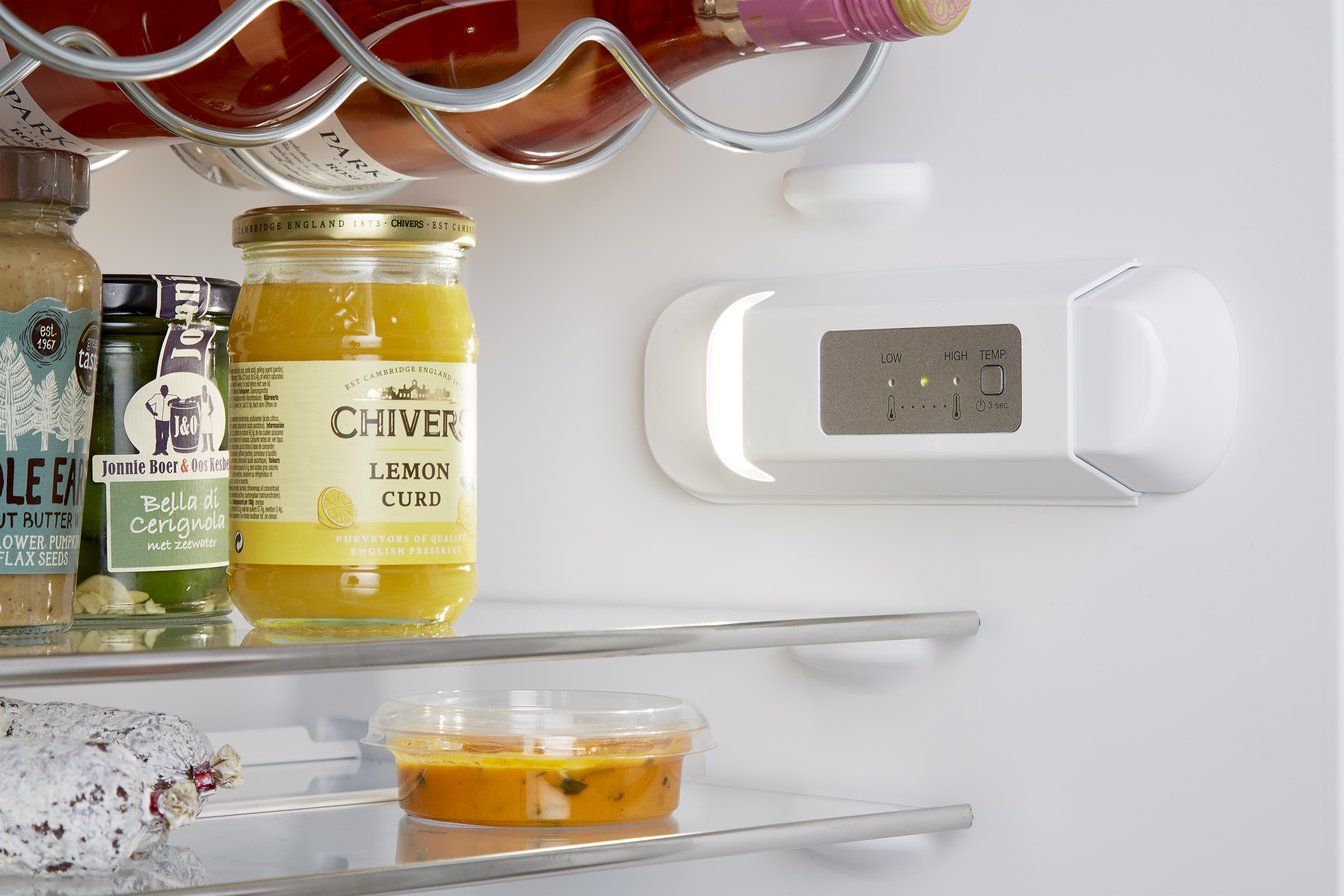 - 1 deurvak is smaller, waardoor hogere flessen in het vak