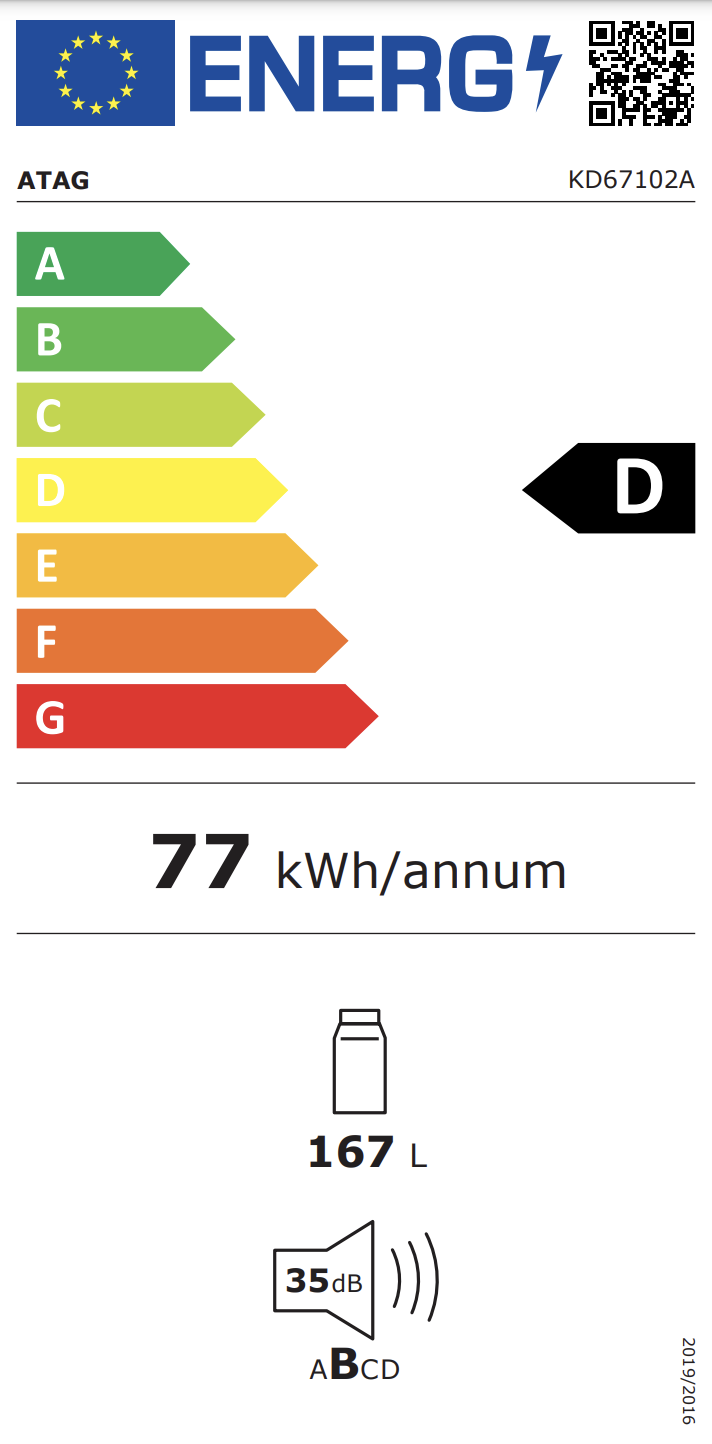 - energieverbruik: 77 kWh/jaar