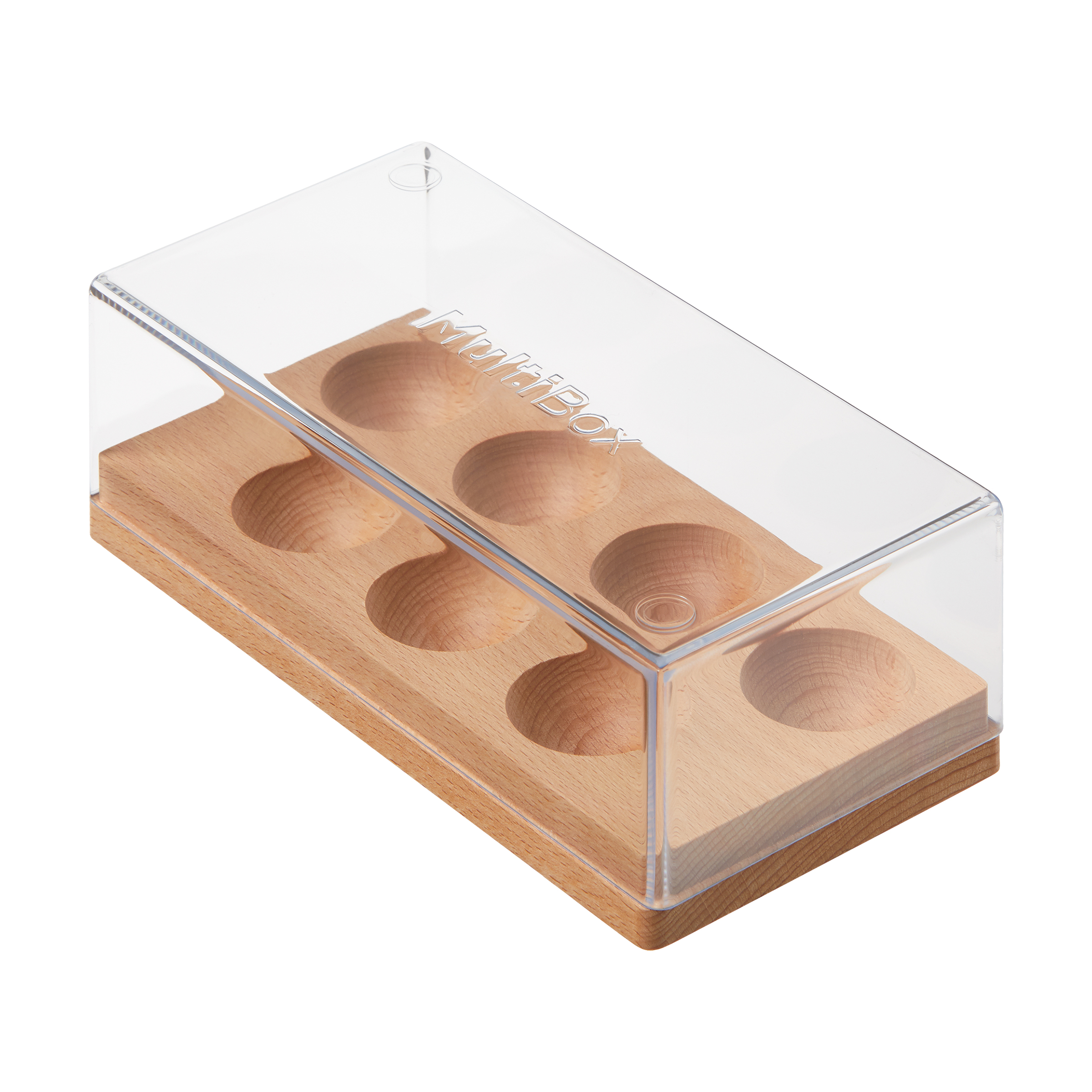 5 luxe draagplateaus van veiligheidsglas, waarvan 4 in hoogte